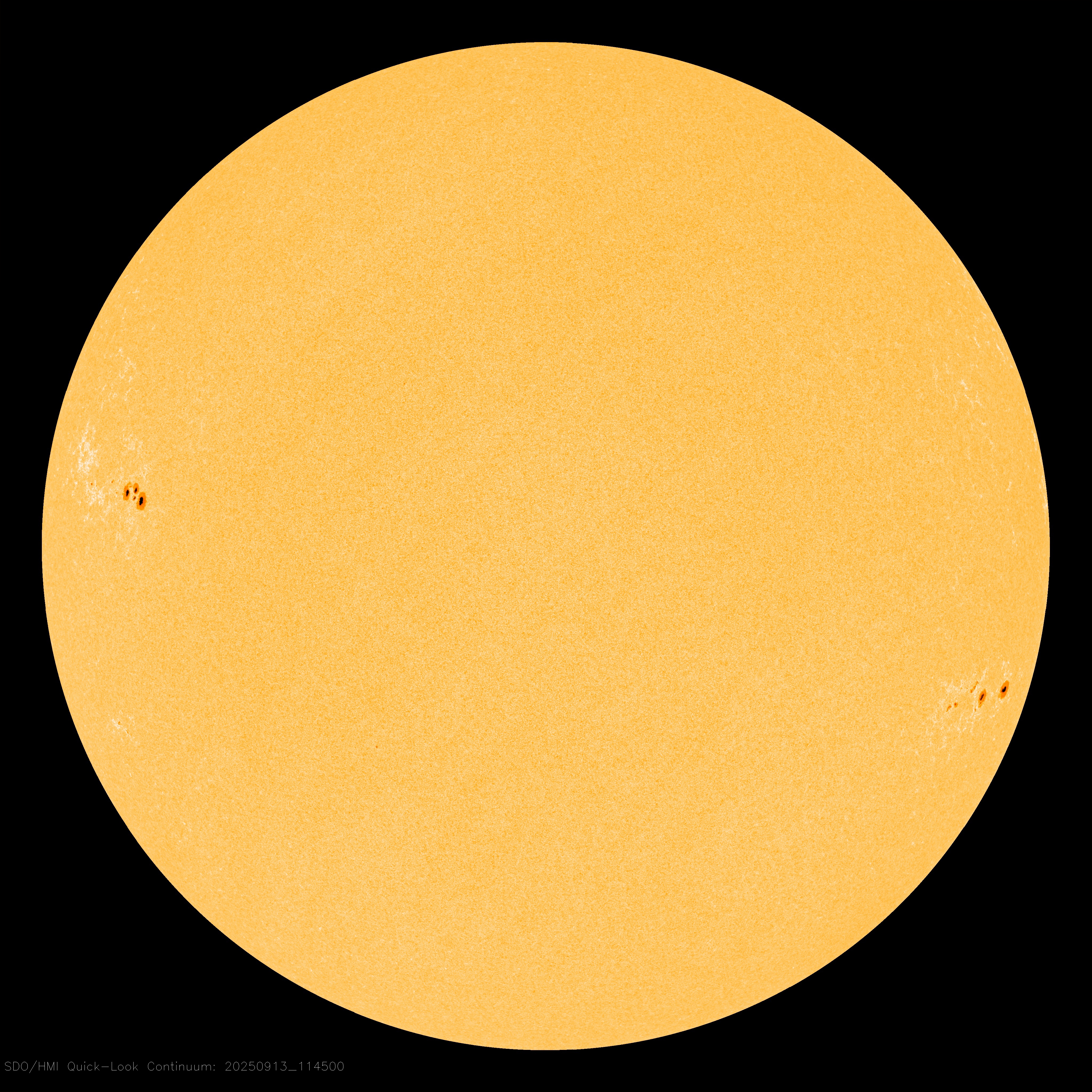 Continuums provide photographs of the solar surface, incorporating a broad range of visible light appearing yellow and orange.