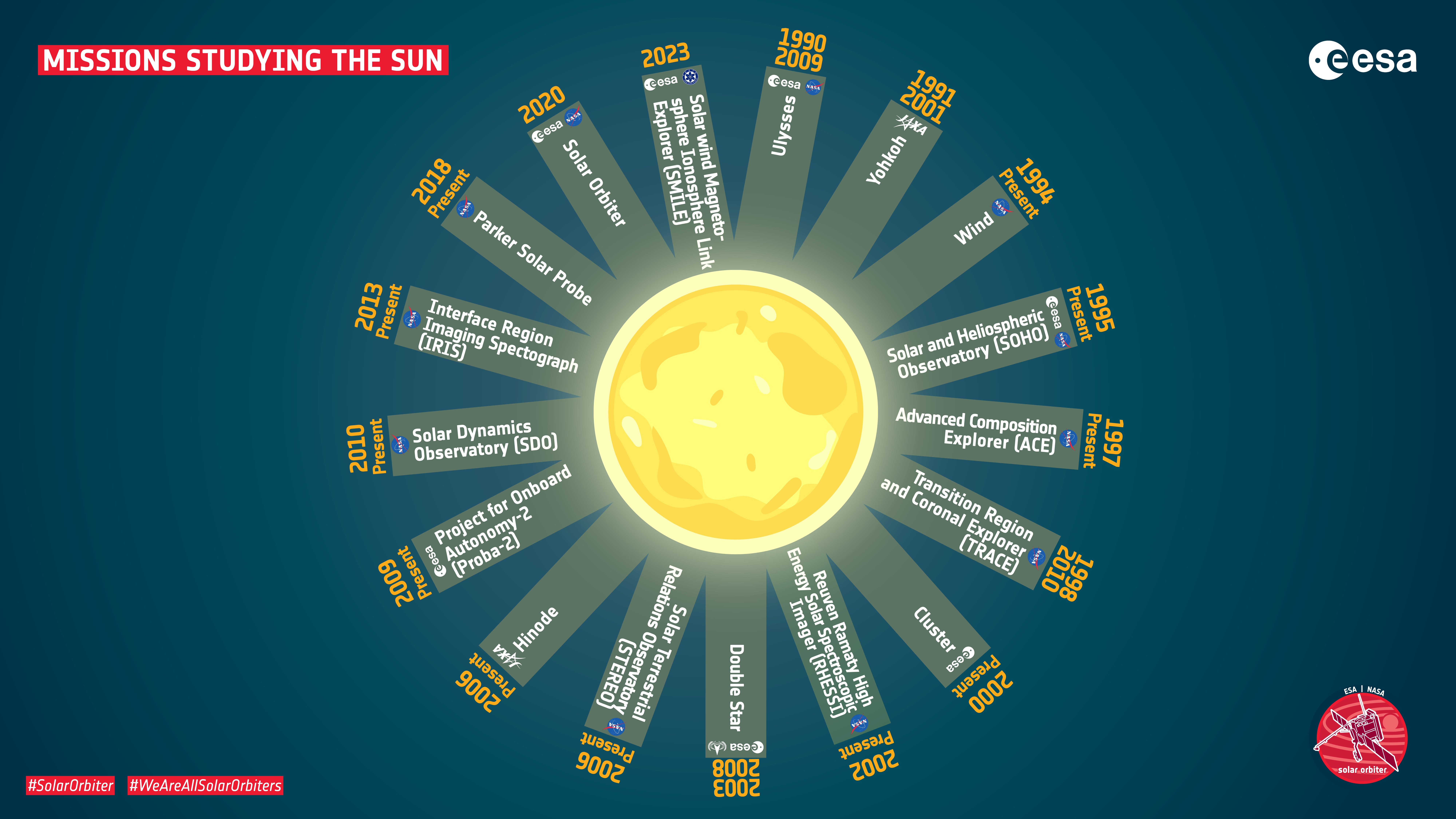 Overview of missions studying the Sun and solar wind, and the Earth-Sun connection. credit: ESA – S.Poletti