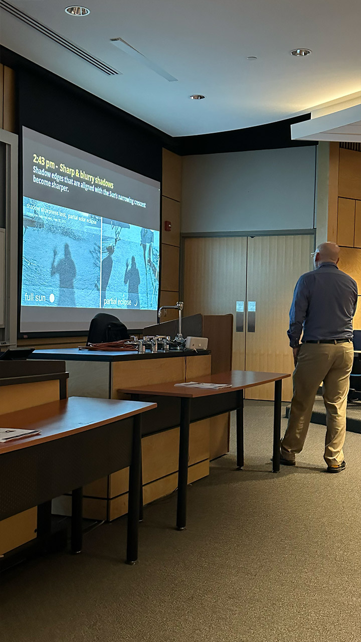 The Astronomy Club kicks off Eclipse Week with a lecture from C. Alex Young. The talk covers Solar Eclipse 101, including what to look for during partial and total solar eclipses, tips for viewing, comparisons of past eclipses. It also included a brief overview of space weather and the connection to the Sun’s corona. Click photos for a larger view.