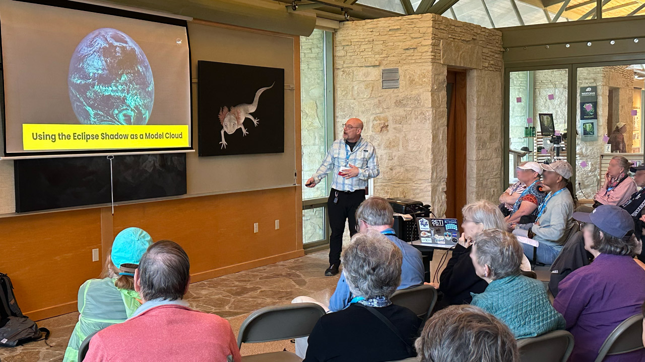 The first lecture was a detailed look into the nitty gritty of when the eclipse would occur in Fredericksburg, Texas. This entailed a deep dive into what we could expect to see during a detailed timeline from the beginning to the end of the April 8 eclipse. The view of totality from the ground was compared to the different limited views available from space, along with detailed computer predictions of how nature would amaze us. We looked at the specifics of why we have eclipses, and the clockwork of the Sun, Moon, and Earth. We ended with a glimpse of upcoming eclipses for the next 20+ years around the world.