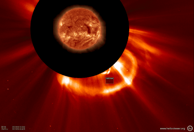 Around 3:30 UT on October 6, 2010 a filament erupted in the northeast part of the solar disk (upper left area). Moving at around 375 km/s (850,000 miles per hour) the CME combined with the ambient solar wind then over […]