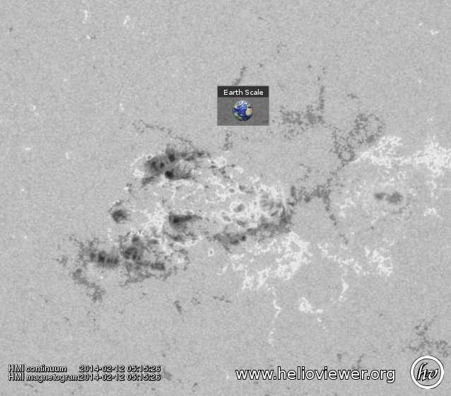 The region is 10+ Earths across as shown in this SDO/HMI visible light image.